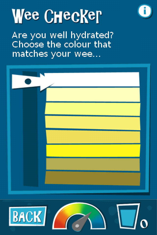 Ook zit er een ‘wee checker‘ in de app, waarmee je aangeeft welke kleur je urine heeft. Meteen daarna laat de app zien of je wel genoeg hebt gedronken. Voorzetje: hoe witter, hoe beter. De statistieken van de quiz en de wee checker worden bijgehouden op een aparte pagina, evenals het aantal dagen dat je de druppel in leven hebt gehouden. Resteert er nog ‘Pete on repeat’, waarin de druppel alles wat je zegt in een hoge stem napraat. Dit onderdeel richt zich duidelijk op kinderen, maar dat is niet erg. Thirsty Pete voor de iPhone is gratis en bevat daarmee al meer functionaliteit dan andere napratende dieren die voor 79 eurocent in de App Store worden verkocht.