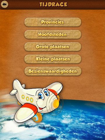 Er zijn vijf categorieën waar je naartoe kan vliegen: provincies, hoofdsteden, grote plaatsen, kleine plaatsen en bezienswaardigheden. Dat kan in een moeilijke en makkelijke stand, een verschil tussen 3 en 4 minutenspeeltijd. In de moeilijke stand krijg je wel meer punten voor een goed antwoord.