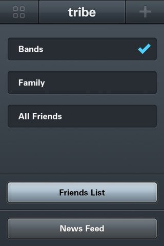 De interface van Tribe licht haar knoppen niet toe met een omschrijving en het zal even lastig zijn je weg erin te vinden. Bij het openen van de app kan je een van je samengestelde vriendenlijsten selecteren en kun je met een knop de vrienden toewijzen of meteen naar de nieuwsfeed gaan. Dan onthult het belangrijkste gedeelte van de app zich met vier tabbladen: je vriendenlijst (los van de lijst waarin je zit), de nieuwsfeed, je wall en een tabblad om terug te gaan naar het beginscherm waarin je kiest uit een vriendenlijst. De andere tabbladen verdwijnen daardoor weer uit beeld.