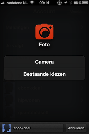 Bij het maken van een nieuwe blogposting moet je niet meer onderin het scherm op een plusknop tikken, maar op een ‘editknopje’ rechtsonder in het scherm. Je krijgt dan een soort dashboard te zien met zes gekleurde icoontjes, zoals hierboven. Net als in de desktopversie van Tumblr kies je voor het publiceren van een tekst, foto, citaat, link, chat of video. Bij foto’s en video’s verschijnt een nieuw uploadtool, zoals op de afbeelding rechtsonder. Na het intikken van een tekst en het toevoegen van tags kun je het blogbericht publiceren. Bij de opties kun je nog een aantal zaken instellen: op welk blog et moet verschijnen, of je meteen wilt publiceren (toevoegen aan wachtrij of als concept opslaan kan ook) en of je je blogposting op Twitter wilt aankondigen. Eventueel kun je een aangepaste URL in je bericht verwerken. Wat niet mogelijk is, is om een tijdstip voor de blogposting in te vullen, zoals op de desktop mogelijk is (zoals “in 20 minutes” of “tomorrow”). Dit is alleen mogelijk als je later naar de desktop gaat en de posting uit de wachtrij voorziet van een publicatietijdstip.