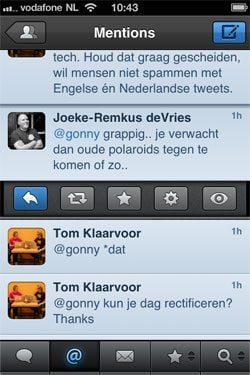 Ik heb ook nog TwitBird Premium staan die iets beter lijstje inlaad dan Twittelator Pro en mooie tweet en reply erop bundeld. Ik hoop dat die feature ooit ook nog eens in Twittelator komt.
