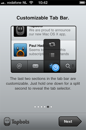 Een jaar geleden schreef Mark Jardine een blogposting, waarin hij aankondigde dat Tapbots was begonnen aan een nieuwe Twitter-app. Tapbots is met eerder verschenen apps als Convertbot en Pastebot uitgegroeid tot een publiekslieveling; het design van de apps is een voorbeeld voor veel andere ontwikkelaars. Bovendien laat Tapbots zien dat je voor simpele apps als een rekenmachine of een conversietool (waarvan er inmiddels tientallen zijn) gewoon geld kunt verdienen, als je maar zorgt voor een strak design en uitgekiende functies.