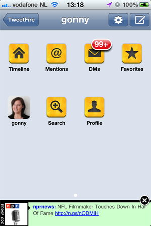 Na een korte ’testrit’ ben ik nog niet helemaal overtuigd van de voordelen van TweetFire. Bij het laden van mentions moet je toch nog steeds een paar seconden wachten, terwijl me een extra snelle ervaring was beloofd. Andere kritiekpuntjes zijn: de app haalt aanvankelijk oude mentions van een paar dagen geleden op en bij de normale berichten in de tijdlijn staat niet hoe oud ze zijn (paar minuten geleden? paar uur geleden?). Los daarvan ziet de app er qua design niet echt vernieuwend uit en moet je rekening houden met een reclamebalkje onderin het scherm.