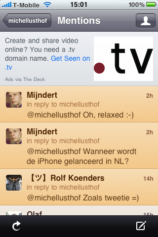 Om de ontwikkerlaars te supporten had ik versie 2 al gekocht. Echt dus niet dat ik weer 3,99 neer ga tellen. Ik wil een gratis update!! Anders ga ik wel over op twitter for Iphone…. Alleen mis ik daar de standaard zoekfunctionaliteit in……