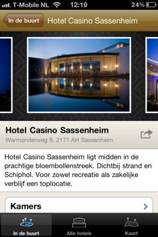 Elk hotel wordt aangeduid met een of meerdere foto’s in een balk bovenin het scherm. Je kan de foto’s vergroten en er tussen swipen. Soms zijn ze voorzien van onderschriften zodat je weet waar je naar kijkt. Dat verschilt per hotel. Bij de faciliteiten zie je een checklist met punten die het filiaal biedt met eronder een grote belknop. Arrangementen leidt je naar acties van de hotelketen en kamers geven je, een beetje afhankelijk van het hotel, foto’s en een uitgebreide omschrijving van wat je krijgt voor welke prijs. Voor een exacte prijs en reservering moet je toch echt de iPhone aan je oor houden.