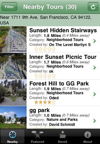 TourRecorder roept gebruikers op om voor alle mogelijke routes uit te stippelen. Het maakt niet uit of het om een nachtelijk rondje met de hond, een rondleiding op het Universiteitsterrein of een sightseeing door Zuid-Italië gaat. Bedenk bijvoorbeeld ook eens wat de applicatie kan doen met een speur- of spooktocht in het bos. De bedenker creëert de route met TourRecorder (screenshots hierboven) en de volgelingen gebruiken Geotrio Tours (screenshots beneden) om het verhaal te beluisteren.