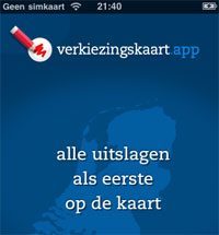 Verkiezingskaart is een iPhone-applicatie die niet tijdig in de App Store is verschenen. Dat is jammer, want de app geeft een mooi overzicht van de uitslagen.