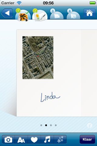 Je kunt een achtergrondfoto selecteren, tekst schrijven en positioneren, meer dan 400 verschillende versieringen toevoegen en zelfs een handgeschreven handtekening maken en plaatsen. En dat dan voor drie van de vier kanten van een kaart. Het aantal mogelijkheden is enorm uitgebreid. Je kan zelfs een foto maken vanuit Google Maps om te laten zien waar je bent. Als je klaar bent met het bewerken van de kaart, bepaal je in welk formaat je de kaart wilt sturen en naar welk adres deze verstuurd moet worden. Na het inloggen kan je nog eens een cadeau erbij uitzoeken. Zo kun je bijvoorbeeld een chocoladereep of een bos bloemen meesturen – uiteraard wel tegen een flinke meerprijs. Als je nog geen account bij Greetz hebt, kun je je registreren via de site. De betaling daar loopt via iDEAL. De app zelf is ontwikkeld door Sharewire.