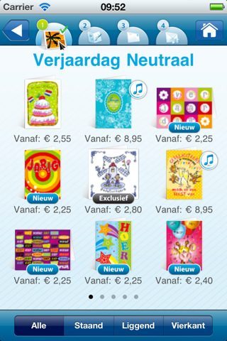 Voor een normale kaart betaal je al 2,25 euro en als je er een wilt versturen met ingesproken boodschap, mag je minstens 7 euro aftikken. Daar staat tegenover dat er heel veel mogelijkheden zijn. Zo heb je de keuze uit meer dan duizend kaarten en de mogelijkheid om zelf een kaart te ontwerpen. Het voordeligst is als je al lid bent bij Greetz, maar ben je dat niet, dan kost een vierkante kaart €3,15 en een staande en liggende beide €2,85. Vervolgens zwem je in een zee van opties.