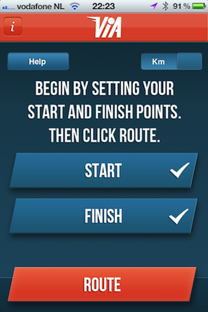Leuk ‘begin by setting your start and finish points’. Dat is bij mij altijd ongeveer hetzelfde. Je loopt immers een `rondje` Wat wel handig is dat je de `via’s` kunt aangeven. Maar om dat in te gaan stellen en een 3e app ( runkeeper, zombiesrungame, en deze ) op te starten tijdens het hardlopen… Nee ik wacht wel tot runkeeper er zelf mee komt 🙂