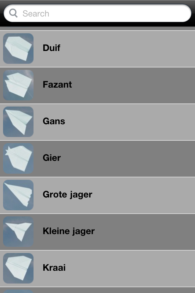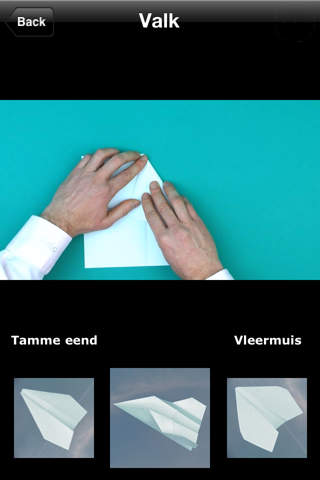 Vliegtuigjes is een nieuwe applicatie van de Nederlandse ontwikkelaar Edio. De applicatie bestaat uit een lange lijst met vouwinstructies voor het maken van een papieren vliegtuigje, van de Aalscholver tot de Zwaluw. In totaal staan er bijna 30 vliegtuigjes in de lijst. Druk je op een van de items, dan verschijnt er een video, waarin het vliegtuig langzaam gevouwen wordt. De video’s zijn echter niet voorzien van geluid en er zijn geen getekende instructies. Jammer, want op deze manier moet je de video pauzeren bij iedere vouw die je maakt.