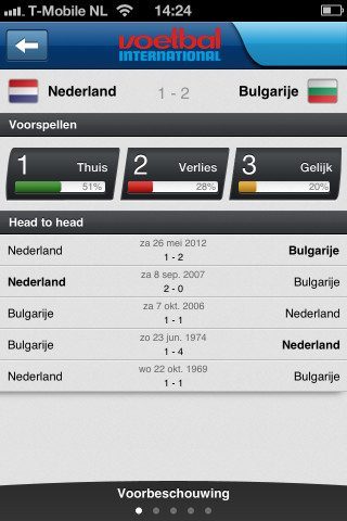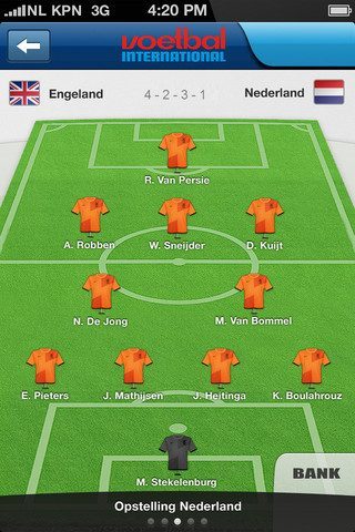 Dat je een voetballand kan selecteren in de app en daarvan apart het laatste nieuws kan zien, is een functie die elke andere EK-app ontbeert. Ook zie je per land de eindstanden van de laatste wedstrijden, de groepsstand op het toernooi en de selectie. Bij een speler zie je geboorteplaats en -datum, lengte, gewicht en laatste interlands, maar een overzicht van totaal gespeelde interlands en doelpunten (of kaarten) ontbreekt helaas. Uit onze vergelijkingstest: