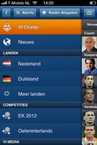 VI noemt haar update 4.0 van de applicatie dé update van het jaar. Niet alleen is de app klaargestoomd voor het EK, hij gaat ook nog gehuld in een totaal vernieuwde interface. Met de knop linksboven op een pagina open je een overzichtelijk menu waarin je direct toegang hebt tot VI Oranje, nieuws, gegevens over het Nederlands elftal, andere landen, het overzicht van het EK 2012, Oefeninterlands, alle videofragmenten, radiofragmenten, Twitter en Facebook. Met knoppen bovenin kan je meteen VI Radio afspelen en de pushmeldingen instellen. Die kan je ontvangen voor wedstrijden van geselecteerde landen, belangrijk nieuws en elders in de app per wedstrijd.