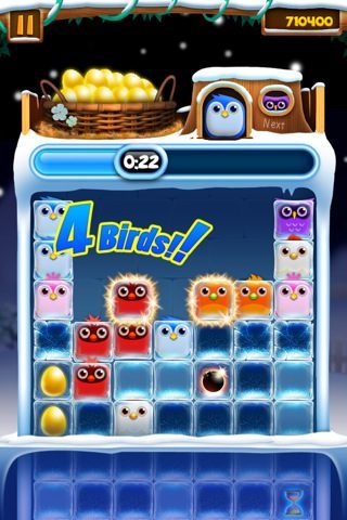Die heet Ice Break en daarin zitten de vierkante gevleugelden gevangen in ijsblokjes. Alvorens de vogels gecombineerd kunnen worden, dienen de ijsblokjes verwijderd te worden en dat kan door op het scherm te tikken. Niet de meest intelligente spelvariant, maar een aardige afwisseling misschien voor de normale stand.