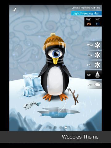 Weatherwise biedt momenteel drie andere thema’s die je in-app kunt aanschaffen voor 79 eurocent per stuk. Lost Robot toont een geschilderde robot die vastzit in het gras, Personas laat verschillende personen zien bij verschillende omstandigheden en The Woobles zijn eenogige monsters die je recht aankijken op een heuvellandschap. Je kan van alle thema’s meteen een preview zien.
