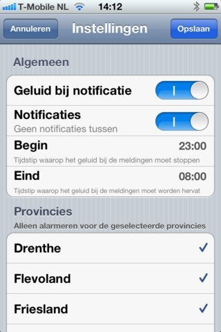 Zes graden Celsius boven nul of acht graden, wat maakt het uit? WeerAlarm is een nieuwe applicatie voor de iPhone en iPod touch die nu eens niet uitgebreid in gaat op de weersvoorspelling van je eigen woonplaats voor elk dagdeel van de komende vijf dagen. Het heeft als voornaamste eigenschap dat het je middels een pushmelding uren van tevoren waarschuwt als er een weeralarm wordt vrijgegeven. In de instellingen geef je aan voor welke provincies en vanaf welk waarschuwingsniveau je ze wilt ontvangen.