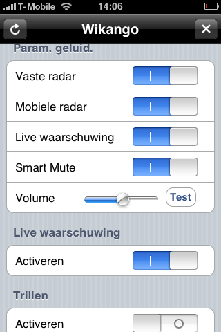Je kunt instellen of je enkel een waarschuwing wilt krijgen bij een mobiele radar of bij een vaste radar (of allebei) en ook zit er een smart mute optie in. Hierdoor word je alleen gewaarschuwd wanneer je op de betreffende plek te hard rijdt. Wanneer je je aan de snelheid houdt komt er geen waarschuwing.