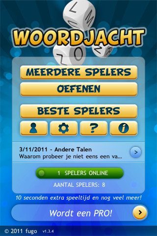 Woordjacht is een leuk en spannend online woordspel, omdat het zo snel is en live tegen andere mensen wordt gespeeld. Op het moment van schrijven had bijna geen enkele gebruiker de Pro-versie en hadden alle spelers dezelfde restricties. Als het deelnemersveld dadelijk wordt verdeeld in niet-Pro en wel-Pro spelers, kan Woordjacht een deel van zijn charme verliezen. Fanatieke Wordfeud-spelers raden we echter sowieso aan een kijkje te nemen bij dit vlotte woordspel, met de aanvullende opmerking dat ook Woordjacht een beroerd woordenboek kent.