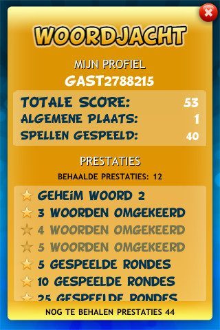 Het aantal spelers dat mee kan doen aan een spelletje online Woordjacht gaat verder dan 2. In onze testsessie speelden we een paar spelletjes met vier en met vijf tegenstanders. Die hebben allemaal een willekeurige spelersnaam, want voor een eigen gebruikersnaam moet je de Pro-uitbreiding aanschaffen in de applicatie. Die biedt meer voordelen, maar daarover later meer.