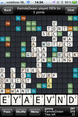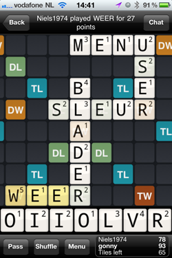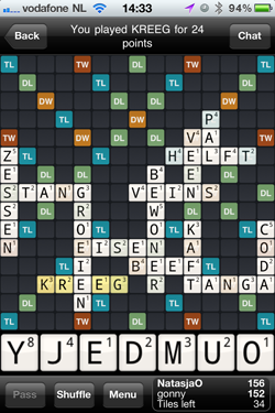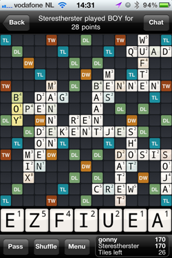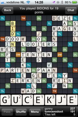 Jongens een aanrader idd! Idd het woordenboek kan beter, maar echt aan te raden! Speel geregeld een spelletje met mijn moeder terwijl ik bijvoorbeeld op school in tussenuur zit, verder is het systeem ook erg handig als het gaat om tijd, je moet binnen 3 dagen reageren waardoor je dus niet steeds bij je iphone moet zitten maar ook dat het niet een week duurt, speel nu ong 5 potjes en het is erg te overzien 🙂 zeker een aanrader!