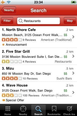 Ik heb de applicatie zelf gebruikt om te kijken in hoeverre het overeenkomt met de bestaande incheckdiensten en er is in feite geen verschil. Wel kun je met Yelp veel meer: niet alleen inchecken, maar ook reviews invullen, bookmarken, uitgebreide reviews lezen en de nieuwsfeed in jouw omgeving bekijken.