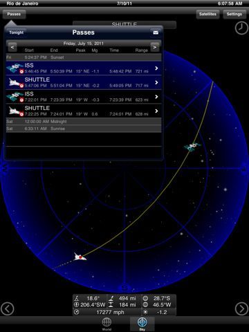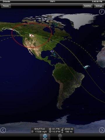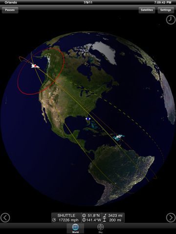 De app houdt de koers van de Space Shuttle bij, die je op een wereldbol ziet vliegen. Als je graag ziet waar hij vanaf jouw positie in de lucht hangt, dan gebruik je de augmented reality-tool om hem in de sterrenhemel te vinden. Coördinaten, bewegingssnelheid en zelfs de hoogte van de Shuttle worden allemaal bijgehouden door de app. Gek genoeg bevindt de Atlantis zich volgens de app nu al bij de ISS, de eindlocatie van de vlucht morgen.