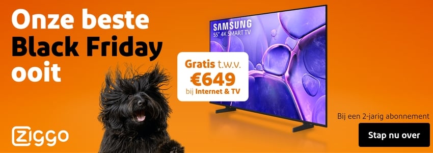 Ziggo doet je namelijk een 4K Samsung tv van 55 inch cadeau ter waarde van €649,-. De film op je volgende filmavond wordt zo wel heel meeslepend. Heb je geen nieuwe televisie nodig? Dan heb je de optie om te kiezen voor een gratis Bol-cadeaubon met een waarde van €450,-, zodat je jouw eigen welkomstcadeau kunt uitkiezen. Toch liever korting op je abonnement? Dat kan ook: de eerste twaalf maanden ontvang je 50% korting. Hierdoor loopt je besparing op tot maar liefst €525,-.