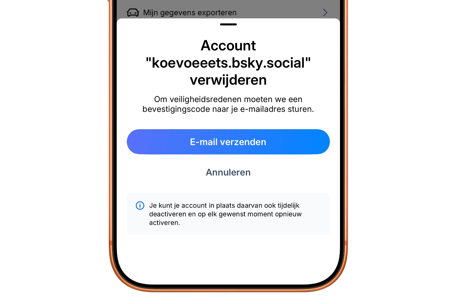 Bij Bluesky is het gemakkelijk om je account te verwijderen, dat kan eenvoudig in de mobiele app. Als je ingelogd bent in de app tik je links bovenaan op de drie streepjes en daarna op Instellingen > Account. Hier kan je ervoor kiezen om je account te verwijderen, maar ook kiezen om deze tijdelijk te deactiveren.