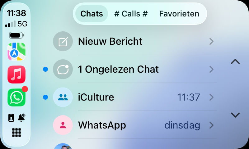 Naast WhatsApp kun je iMessage op CarPlay gebruiken en kun je standaard sms-berichten ontvangen en versturen. Als iemand dus een andere chatdienst dan WhatsApp en iMessage gebruikt, kun je altijd nog een gewoon sms-berichtje versturen.