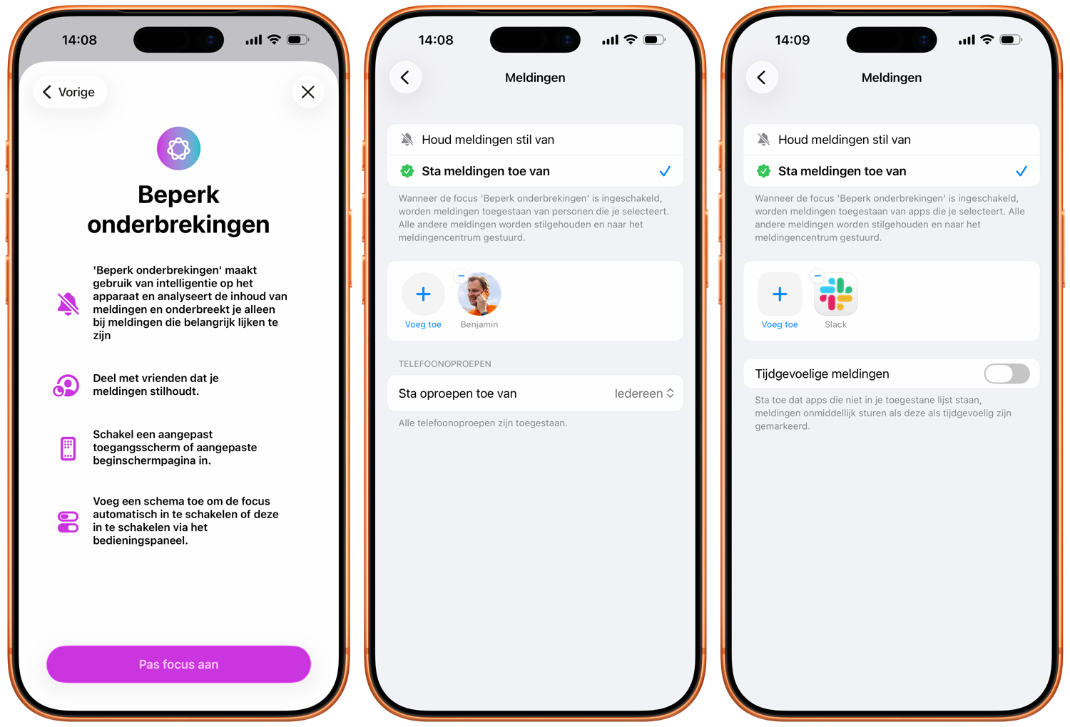 Tijdens werk en privétijd wil je niet altijd uit je concentratie gehaald worden, of je nu aan een belangrijke opdracht werkt of geniet van een diner met het hele gezin. De Focus-modus komt daarbij goed van pas. Het helpt je om apps en berichten van contacten stil te houden op momenten dat ze niet belangrijk zijn, terwijl de belangrijkste meldingen wel binnen komen. We leggen hier vooral uit hoe het op de iPhone werkt, maar op de iPad, Mac en Apple Watch werkt het op een soortgelijke manier.