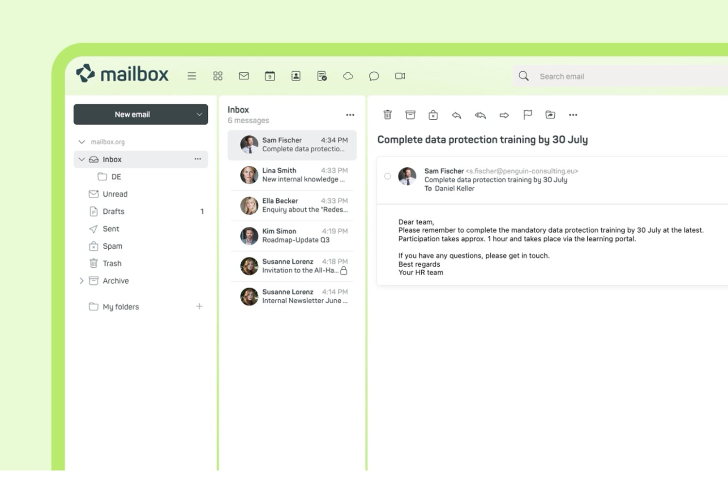 Mailbox.org is een privacyvriendelijke maildienst uit Duitsland die een complete online werkplek biedt met e‑mail, cloudopslag, agenda, videobellen en online Office in één pakket. Alle data staat in gecertificeerde Duitse datacenters, is AVG‑proof en wordt versleuteld opgeslagen en verzonden. Het bedrijf werkt zonder advertentietracking of dataverkoop en met certificeringen als ISO 27001 en BSI C5.