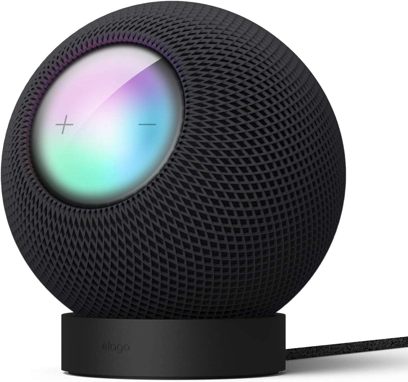 De HomePod mini heeft aan de onderkant een rond voetje, waar hij stabiel op blijft staan. Maar als je wat extra stevigheid wil, kan je hier ook nog een losse standaard onder zetten. Accessoiremaker elago heeft daarvoor de Silicone Stand ontworpen. Dit is een klein rond plateautje waar je de HomePod mini op kan zetten. Het voordeel is ook dat je de HomePod mini dan kan kantelen, zodat het schermpje naar je toegericht staat. Je kan dan beter zien of Siri op je opdracht reageert, zonder dat je bovenop de HomePod mini zelf hoeft te kijken. Hou er rekening mee dat de hoek mogelijk wel wat van invloed kan zijn op de geluidskwaliteit.