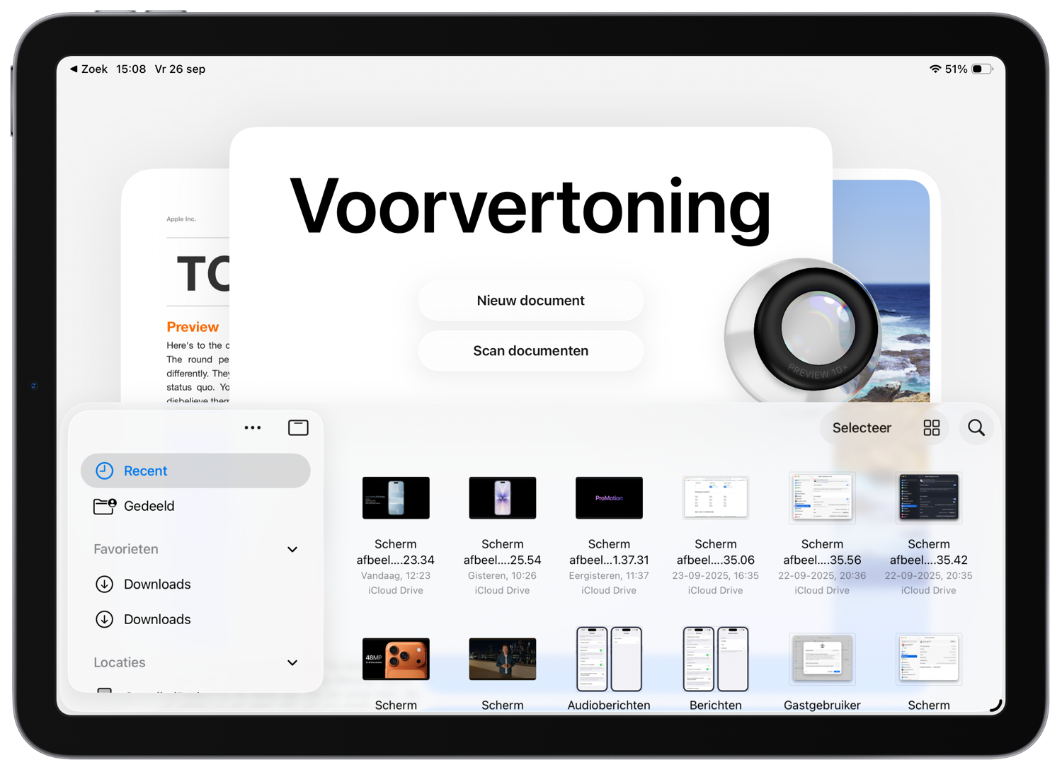 In de nieuwe Voorvertoning-app kun je snel recente bestanden en foto’s openen, maar ook alle gedeelde documenten op één centrale plek bekijken en bewerken. Dat maakt het niet alleen overzichtelijker, maar ook efficiënter voor dagelijks gebruik. Waar het op de iPad voorheen mogelijk was om bestanden of afbeeldingen te openen via verschillende apps, was de ervaring vaak versnipperd, vooral als je iets wilde bewerken of ondertekenen. Met de komst van Voorvertoning wordt dit proces een stuk gestroomlijnder.