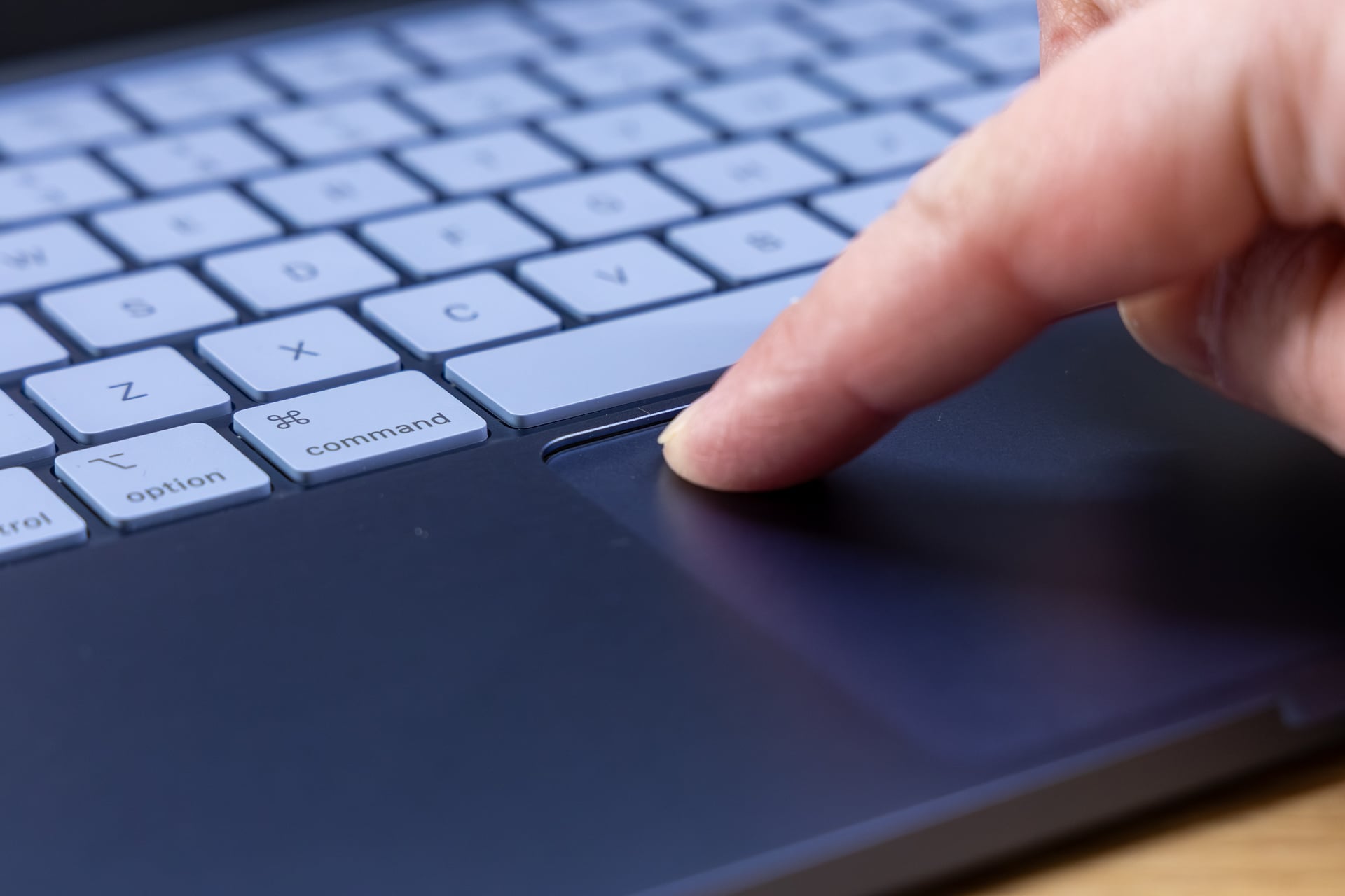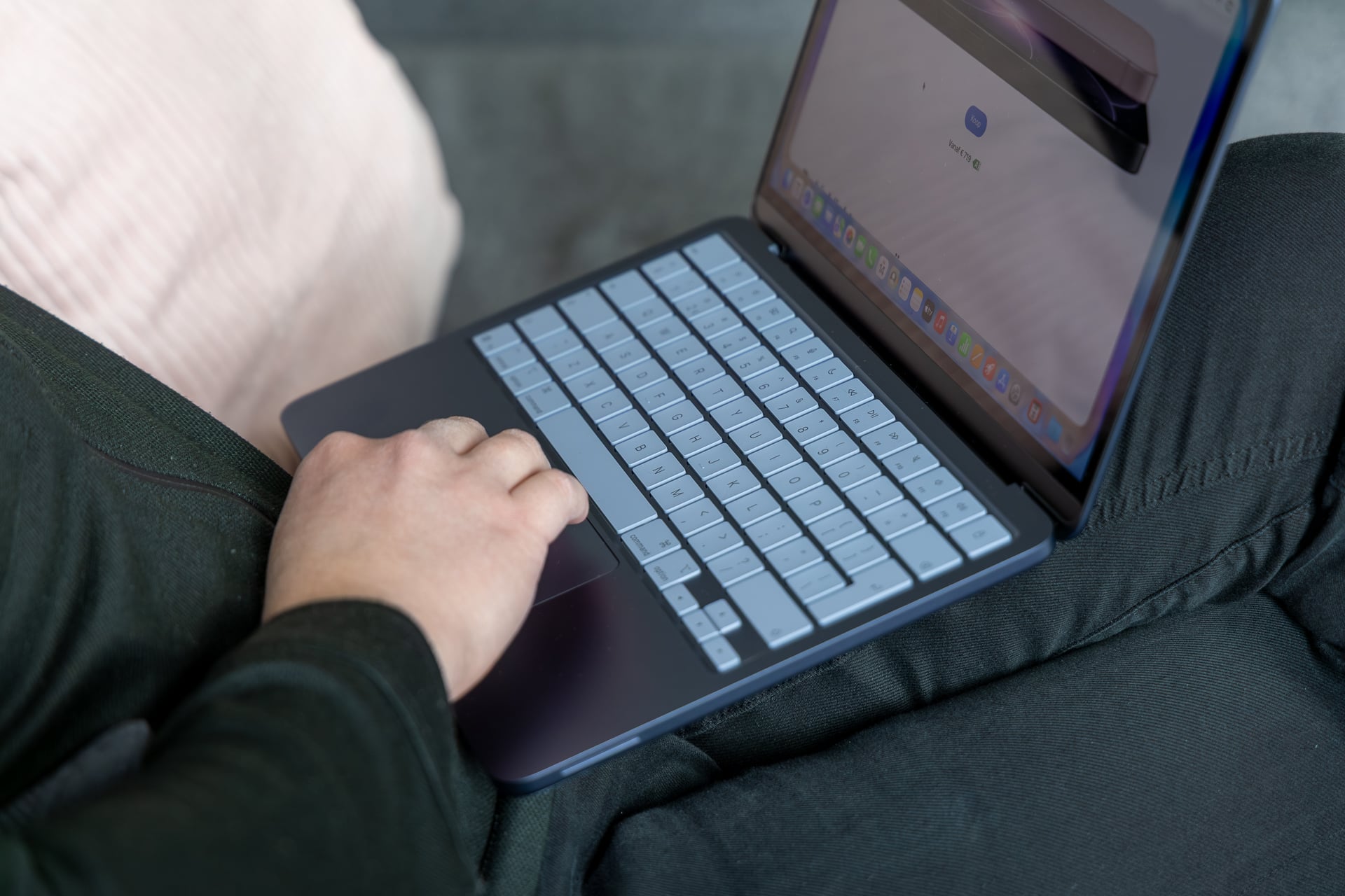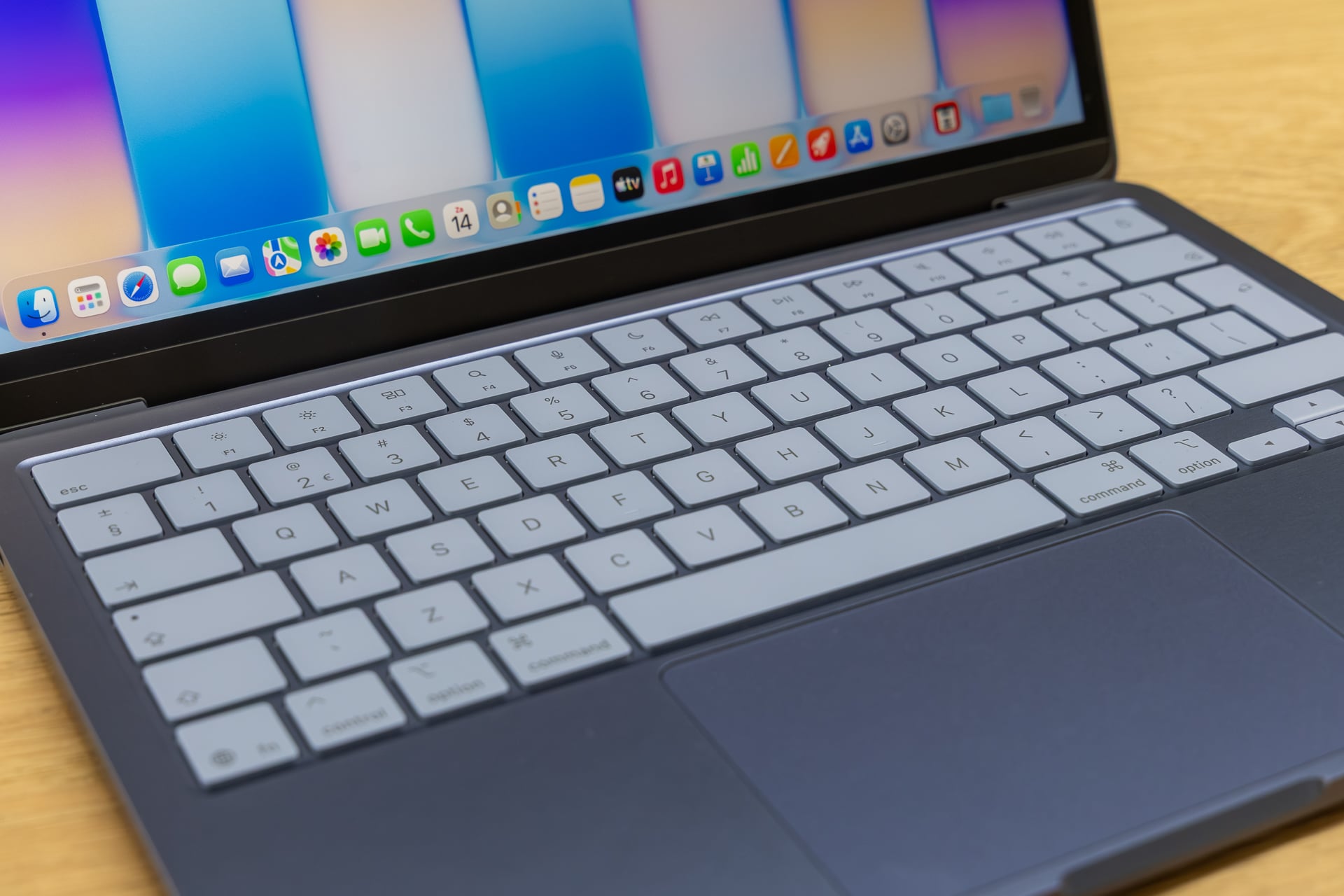 Normaal gesproken hebben MacBooks een zwart toetsenbord, maar bij de MacBook Neo is het toetsenbord passend gemaakt bij de rest van de behuizing. Bij onze blauwe MacBook Neo betekent het dat de toetsen een beetje lichtblauw zien. Het lijkt een beetje alsof de witte toetsen per ongeluk meegewassen zijn met een donkerblauwe spijkerbroek. Dat is niet per se negatief, al kunnen we ons voorstellen dat niet iedereen even gecharmeerd zal zijn van de lichtblauwe toetsen.