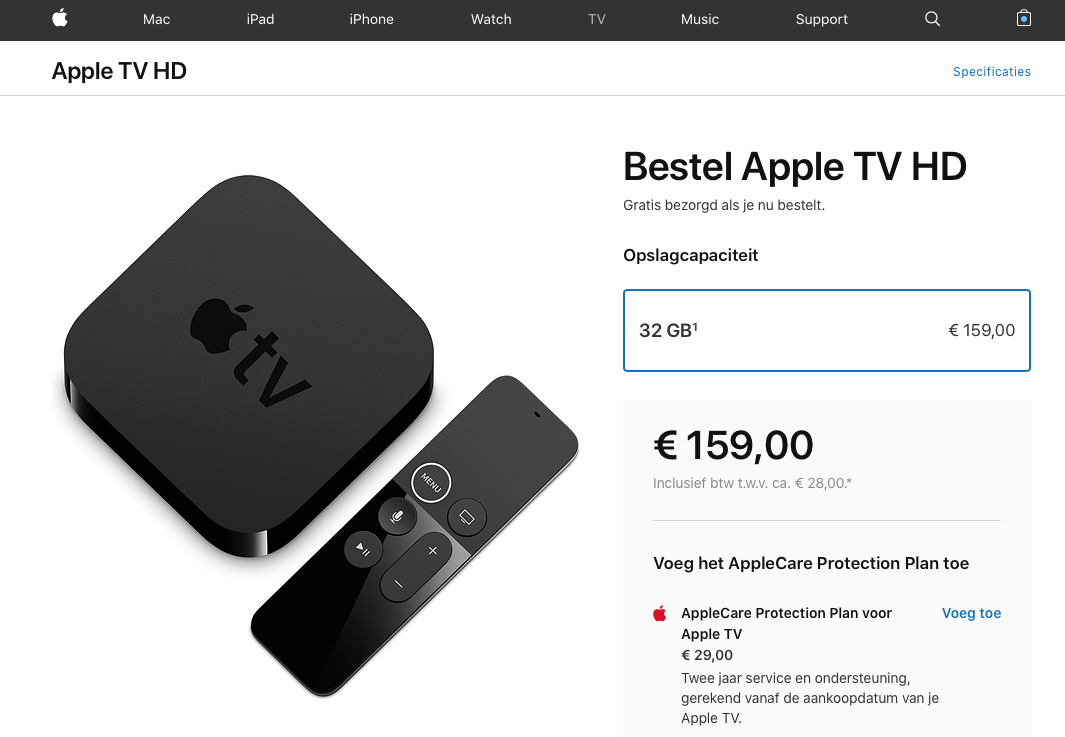 Het is wat ons betreft nu niet verstandig om een nieuwe Apple TV te kopen, maar als je toch niet kunt wachten vind je hieronder de actuele prijzen.