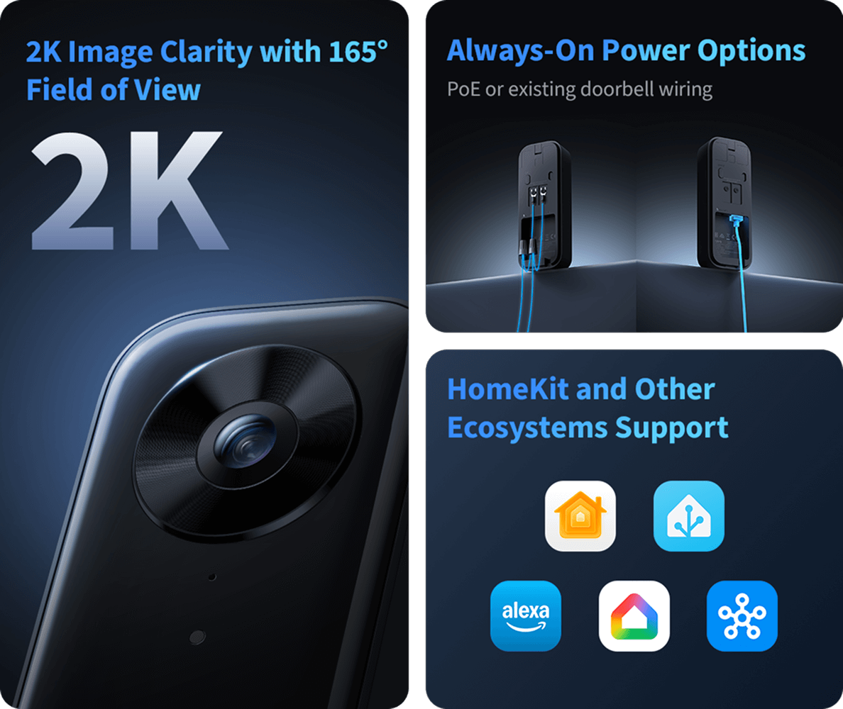 De Aqara Doorbell Camera G400 is een nieuwe slimme deurbel die geschikt is voor HomeKit en Apple HomeKit Secure Video. Wat goed is om te weten, is dat het hier gaat om een bedrade deurbel. Je hebt twee opties om hem te monteren: via je bestaande laagspanningsaansluiting (8-24V AC/DC) van een gewone deurbel of via een Power-over-Ethernet-aansluiting (PoE). Met laatstgenoemde optie sluit je de deurbel dus bedraad aan op het internet, maar hij krijgt daar ook meteen de stroomvoorziening van. Heb je geen ethernetkabel naar buiten toe, dan moet je dus je bestaande deurbelaansluiting gebruiken en verbind je de deurbel zelf via wifi (wifi 6, dual-band 2,4GHz en 5GHz).