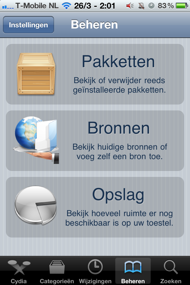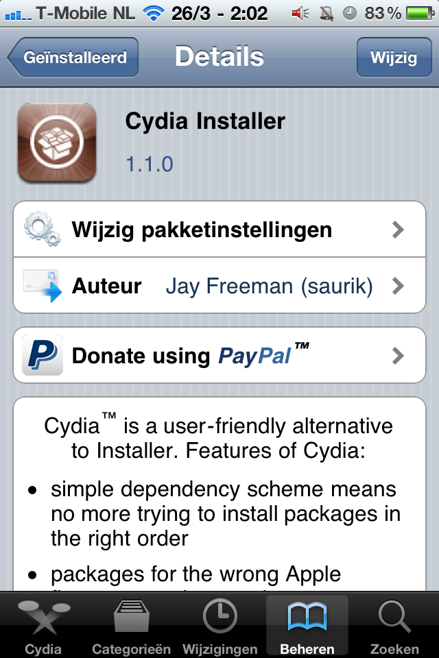 Ach en tja mooi of niet mooi, simpel en doeltreffend is Cydia iig wel.
