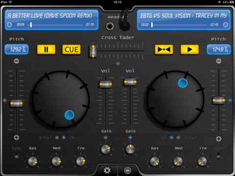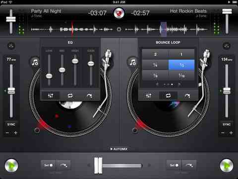 Mijn zoon heeft een Hercules MK-4 DJ-console. Ik heb de indruk dat zo’n hardware ding meer kan dan zo’n iPad app, vooral als de MK-4 is aangesloten op een macbook met Virtual DJ daarop.