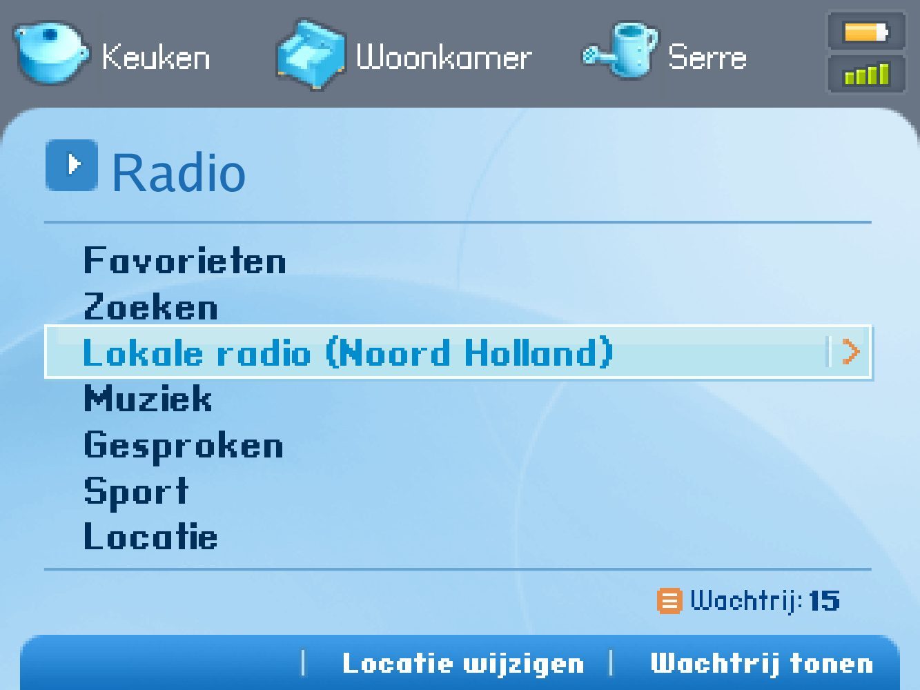 - Je kunt de radiostations doorzoeken op basis van type, favorietenlijst of locatie.