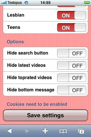We weten dat veel mensen tijdens kantooruren naar de iPhoneclub komen, maar dit nieuwtje moet je toch even voor after hours bewaren: FapPod, een 18+ site voor de iPhone en iPod touch. Dagelijks verschijnen 20 nieuwe video’s in verschillende categorieën. Je kunt in de instellingen aangeven of je thumbnails wilt zien (wij hebben ze voor de screenshots even uitgeschakeld) en je kunt aangeven welke categorieën je wilt zien.
