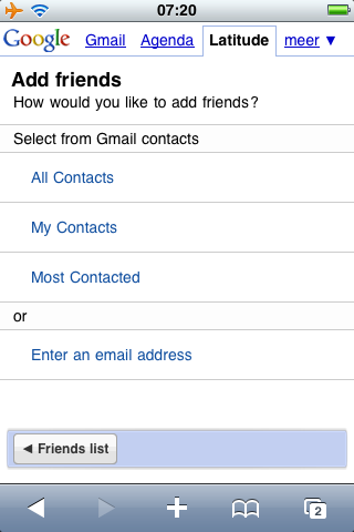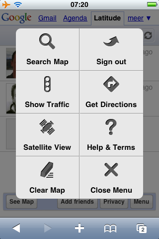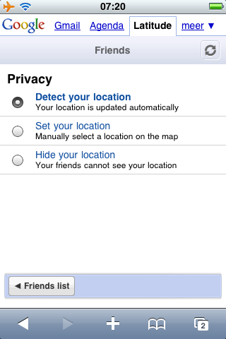 Wie Latitude op de iPhone wil uitproberen hoeft dus niet in de App Store te gaan zoeken, maar surft naar google.com/latitude in Safari op de iPhone.