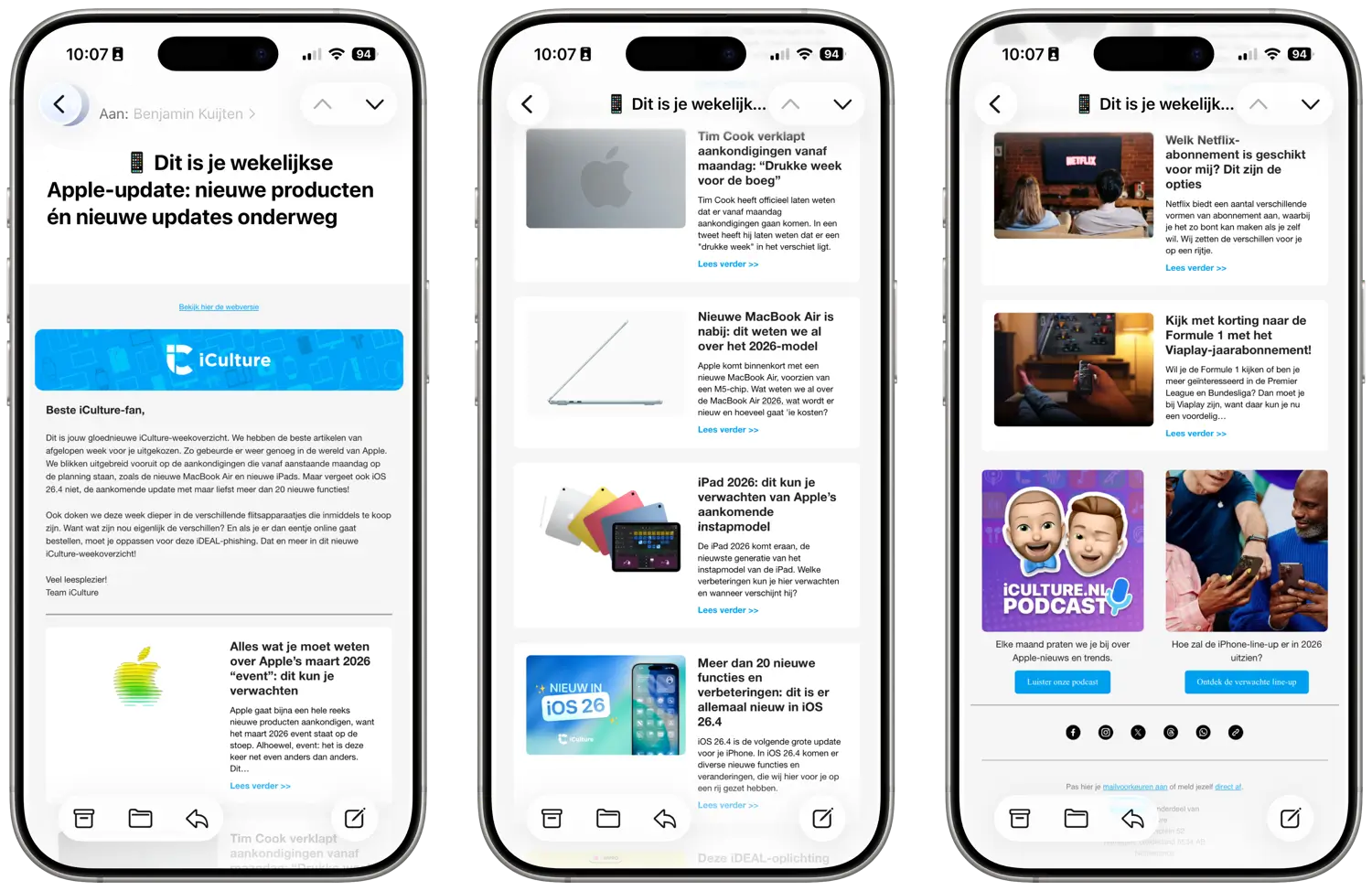 Vorig jaar zomer zijn we op iCulture begonnen met onze eigen nieuwsbrief, waarmee je elke dag al het Apple-nieuws, de beste tips en interessante uitlegartikelen rechtstreeks in je inbox ontvangt. Een mooie manier om je Apple-dag mee af te sluiten, omdat je zo in een overzicht direct in je mail ziet wat er speelt in de wereld van Apple. Wil je alleen het beste van iCulture van de afgelopen week ontvangen? Dan is er nu ook de wekelijkse nieuwsbrief.