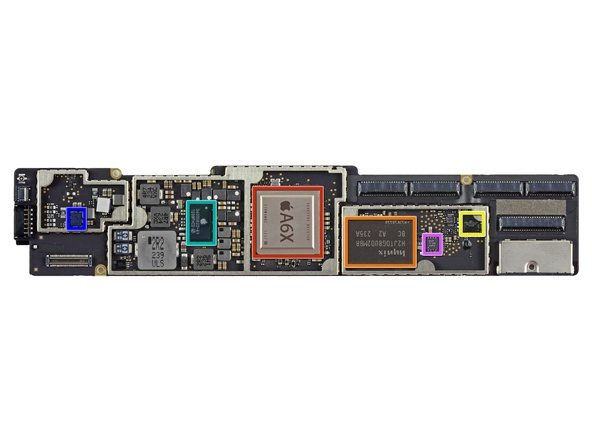 - Het moederbord van de iPad 4, met de A6X-processor.