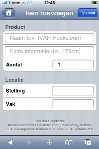 Verder heb ik vanmiddag een kleine update uitgebracht; de webclip (het icoontje op je springboard) heeft nu het IKEA®-logo en in de applicatie het ik ®’tjes toegevoegd waardoor ik hoop dat IKEA® het geen probleem vindt.