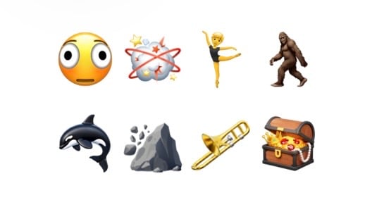 In totaal gaat het om acht nieuwe emoji, met daarnaast nog nieuwe huidskleur- en geslachtsvarianten van de worstelende poppetjes en dansers met konijnenoren. De volledig nieuwe emoji zijn als volgt:
