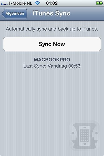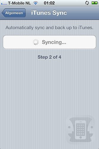 Draadloos synchroniseren en backups maken gebeurt automatisch als je je iOS-apparaat met een voedingsbron (bijvoorbeeld een dock) verbindt. Voorheen kon je dan niets meer met je apparaat doen, maar ook dat is niet langer het geval: synchroniseren en backuppen gebeurt nu op de achtergrond. Door twee rondddraaiende pijltjes in de balk bovenaan kun je zien wanneer het synchronisatieproces actief is.