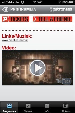 - Je kunt vanuit de applicatie ook YouTube-video’s van bezoekende bands starten.