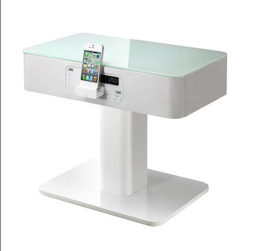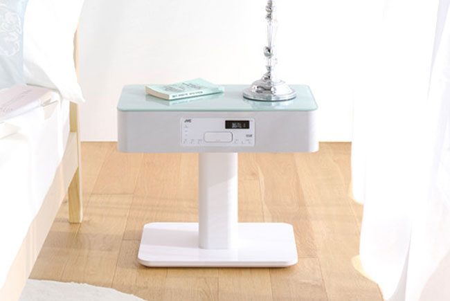 Je kunt je iPhone in een dock zetten op je nachtkasje zodat hij ’s ochtends volledig is opgeladen, maar het is natuurlijk ook mogelijk om een nachtkastje kopen die als gigantische iPhone-lader dient. De nieuwe N-BX3 van JVC is een nachttafel die je iPhone oplaadt wanneer je hem in de dock zet. Het tafeltje bevat ook speakers, waardoor je hem tegelijkertijd kunt gebruiken om je afgespeelde muziek harder af te spelen.