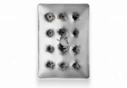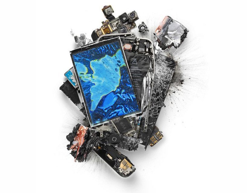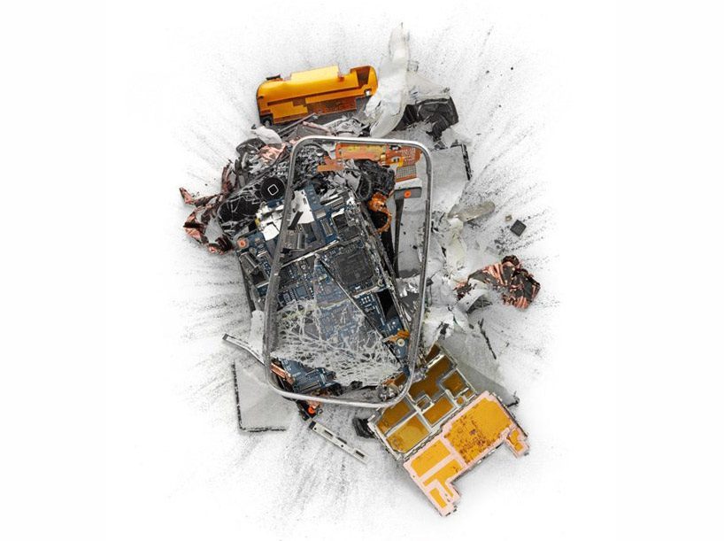 Michael Tompert heeft vroeger gewerkt als grafisch ontwerper bij Apple. Voordat hij de foto’s maakte vernielde hij de iPhones en iPads met een hamer, gasbrander, handpistool of cirkelzaag. Het resultaat is een reeks prachtige foto’s waarbij je soms goed moet kijken wat er nu precies op de foto staat.