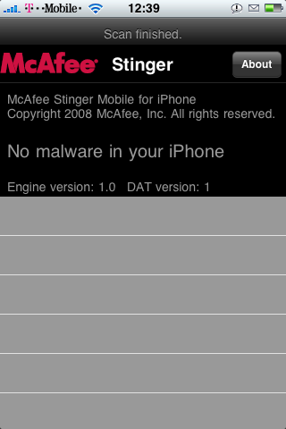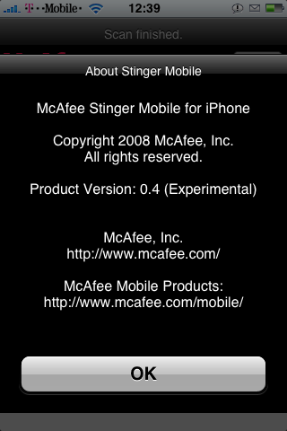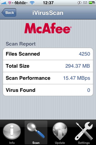 Alles lijkt er op dat we te maken hebben met een serieus experimenteel iPhone-project van McAfee. Of de applicatie ook echt werkt is natuurlijk de vraag, we hebben simpelweg geen virus waarmee we de werking kunnen testen.